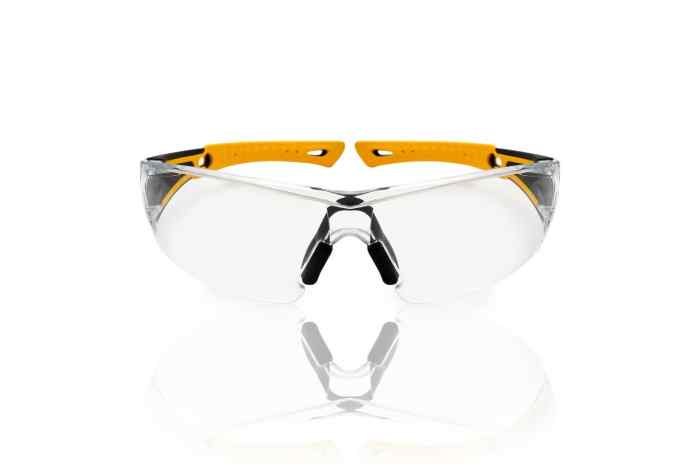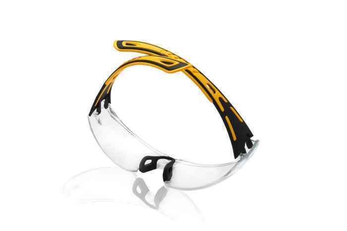 Защитные очки последнего поколения с двухцветными мягкими дужками, сделанными с применением материала ТЭП (термоэластопласт), с панорамными линзами улучшенный обзор и защищают глаза от попадания летящих частиц.